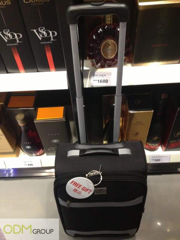 In the picture above, Remy Martin is offering a complimentary bag with a purchase of any of their products. Frequent travelers often need a change of bags as their bags may be damaged as they are being loaded up the cargo.