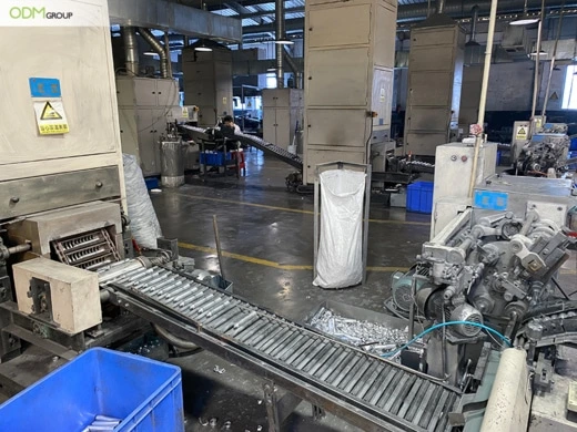 Once the aluminium tube structures are formed, they are transferred via a conveyor belt to the heating machine.