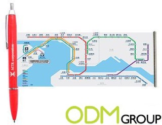 Furthermore, you can also design the item with informative details like the picture we have below. As it is often not easy to orientate in a new city, the banner pen can help your customers. With a printed map on the banner, it’s easy to find out where you have to go.