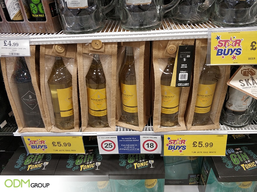 We love this custom canvas wine bag spotted in StarBuys in the UK. On-pack promos are an effective way of incentivising a customer to buy your product over the competitor brands. It also makes your product stand out on a shop shelf – enhancing your brand visibility.