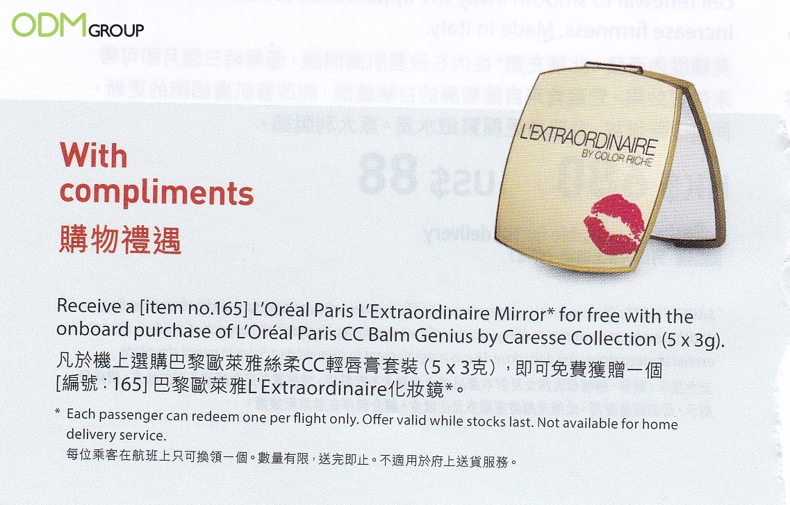 Similarly, L’Oreal customers will receive a complimentary pocket mirror with each purchase of 5 x Lip Balms. We like what L’Oreal have done here as the cosmetic promotional gift compliments the product on offer – what better way to see the results of your product than a complimentary mirror? A gift with purchase is therefore a fantastic way to engage customers into thinking they are getting more for their money.