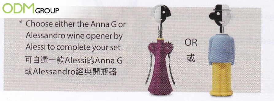 Check out these complimentary cork screws on offer to duty free customers. When customers purchase the decanter and six piece glass set, they will be treated to a custom bottle opener.