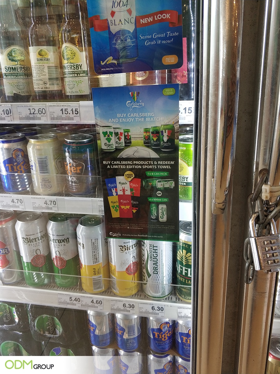 - The Marketing Poster: Furthermore, the poster in the fridge provides a great marketing space for Carlsberg. Shelf Advertising / Fridge Advertising is a fantastic way to attract new customers. A poster is the first thing a customer will see when they go to the fridge. Therefore it is the deciding factor on whether they pick up your product or not.