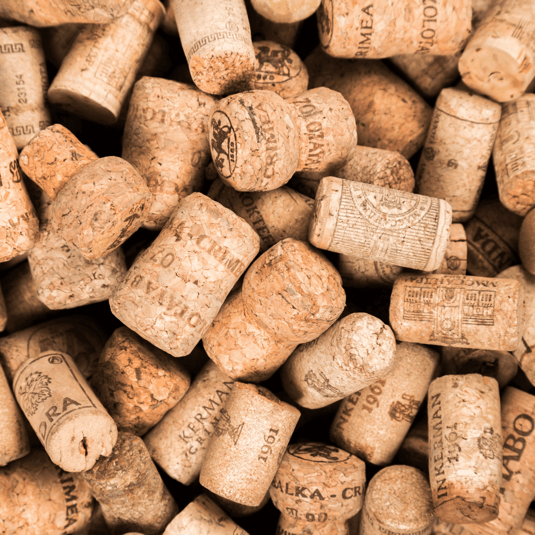 Corks are highly sustainable materials that are harvested from tree bark. After years, the same trees can be harvested for another batch of cork.