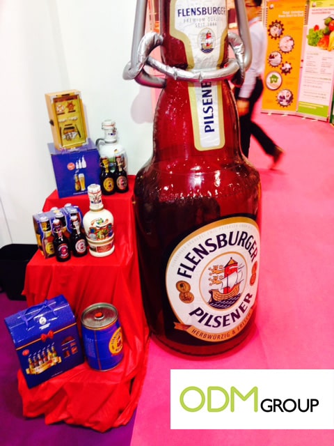 We spotted this giant inflatable beer bottle POS on Flesburger‘s booth for example. If you look closely you can see their limited edition ceramic bottle in a very traditional German style.