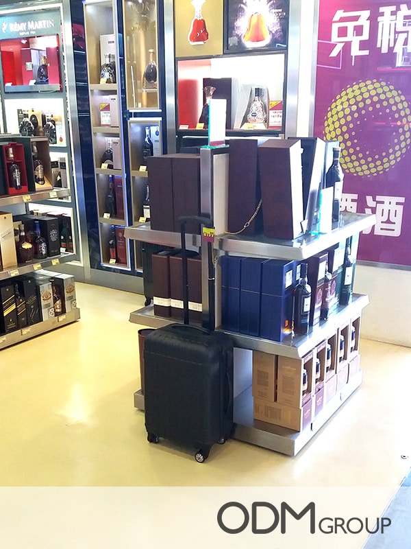 Travelers are always on the lookout for souvenirs on their way home. A brand of liquor has been recently spotted, presenting a GWP hand luggage for their promotion. This promotional product, which sits perfectly beside product shelves, fits excellently in marketing their product inside Singapore’s Duty Free store. It is an item that is sure to appeal to travelers, thus, making this an excellent choice for an airport promotion.