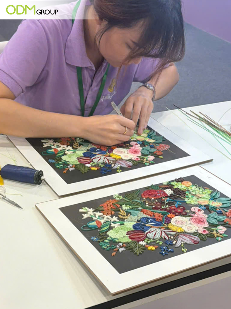 - Quilling cards and framed paper art pieces, ideal for cultural gifting or seasonal campaigns