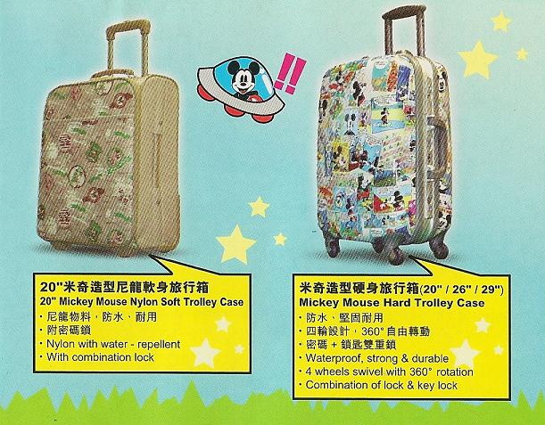 Mannings (Hong Kong store) is having a very interesting pharmacy promotion from May 14 to June 24. Receive one stamp for every HK$50 spent on a single receipt. Collect 20 or 30 stamps to redeem Mickey Mouse travel luggage at a special discounted price (PWP promo). See also Fixed Fee Promotions & Mechanisms for Promotions.