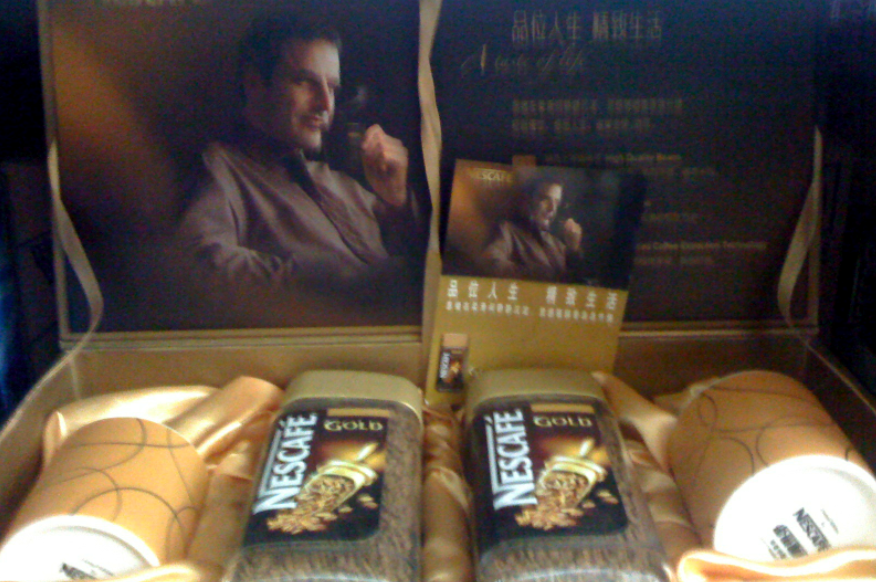 Chinese consumers will be attracted to products packaged in such a elaborate fashion including gifts. The product will appear in their eye as a premium product over other comparable brands. By using such high end packaging the “Gold” instant coffee brand will appear as a more expensive product compared to their competitors on the same shelf. Chinese consumers are not drinking as much coffee when compared to consumption levels of Western countries, there is thus a large market for a new market. Nescafe is using a gift of two coffee cups in this promotion as a way to entice consumers to try a new product. Since this product was seen in a local Chinese supermarket chain in Chengdu this product was oriented in order to attract potential coffee drinkers.