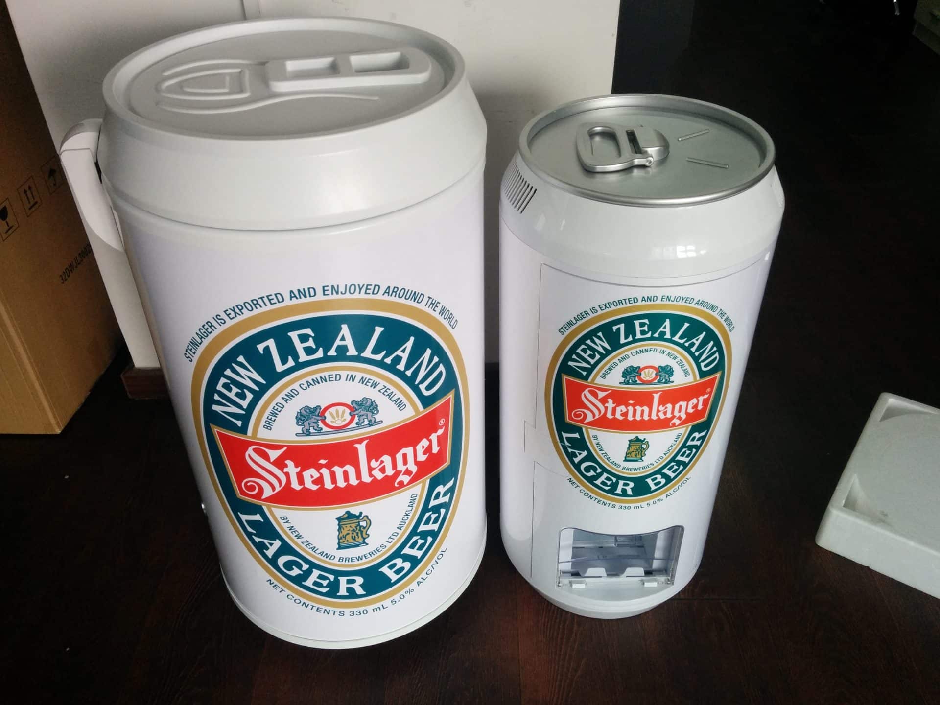 Product Specifications : The white 40litres cooler was made in the shape of the beer can and wheels were added to the bottom for ease of movement from one place to another. When logo placement and quality was of top importance, ODM came through with two beautiful final products. The logo was placed on a center front stricker.