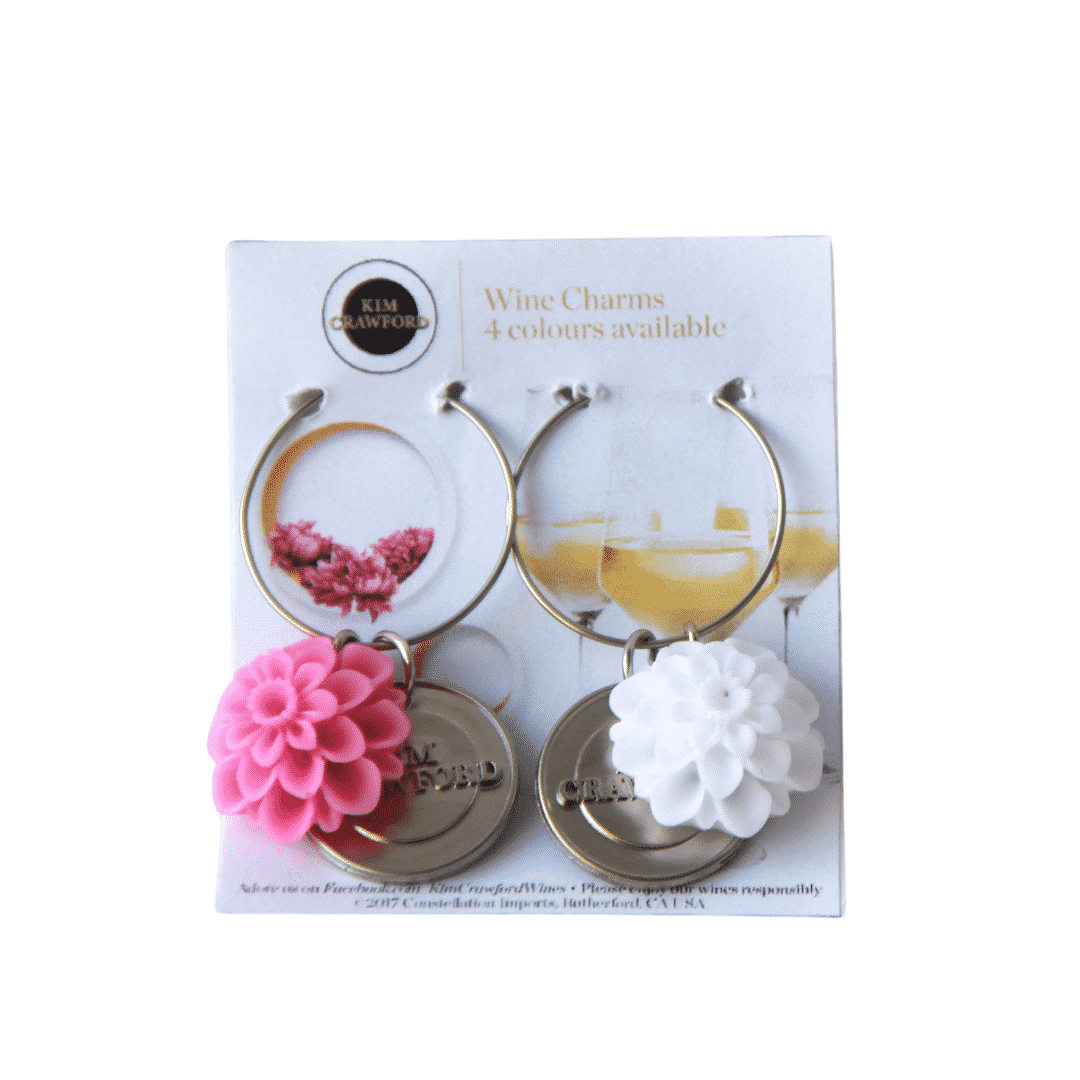 What: Promotional Flower Wine Charm for Kim Crawford — made to fit around the stems of wine glasses.