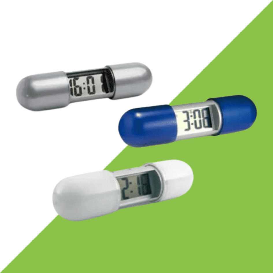 Something that would be very relevant is a pill box. Pillboxes allow for easy branding and it is also something that would be of great use to your customer. This pill box allows consumers to bring their medication out when they travel without hassle.