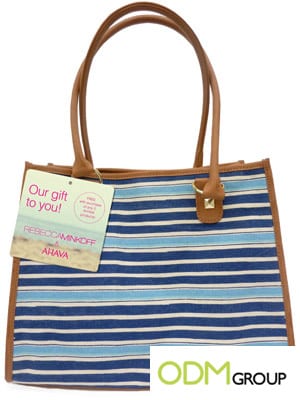 The tote bag is branded with Rebecca Minkoff‘s logo in order to increase brand awareness. Thus, more people will know about Rebecca Minkoff’s brand and they may patronise their outlets.